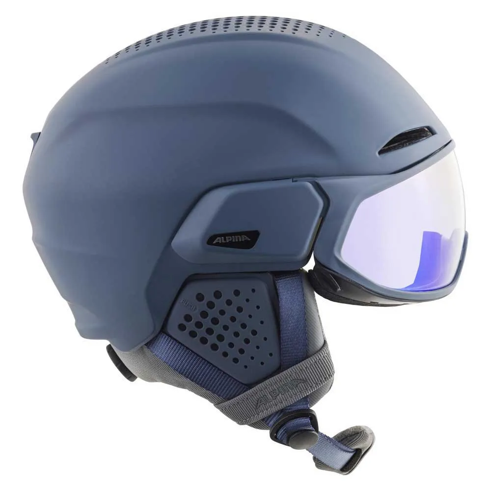 Style, aesthetic, innovation. The ALPINA ALTO is a visor helmet for skiers who like to look good and be able to see everything. The newly designed and perfectly visor translation rotation Mechanism (TRM) sets new standards in terms of comfort. Thanks to TRM, the visor seals extra tightly to the face, thus helping the helmet to sit compactly and comfortably on the head. The ALPINA high-tech lenses ensure optimal visibility and sharp contrast. The ALPINA ALTO’s active air venting structure guarantees active ventilation. At the same time, the clean play of surfaces in combination with the scattered hole structure of the ventilation creates an iconic look.